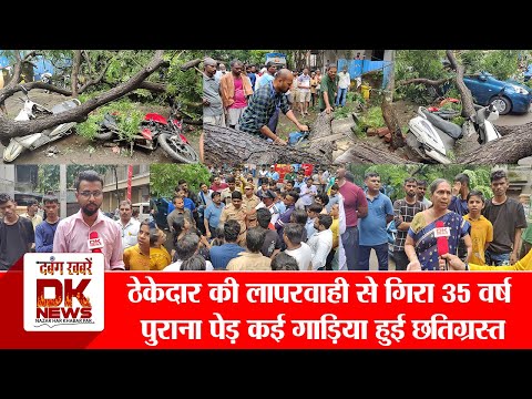 ठेकेदार की लापरवाही से गिरा 35 वर्ष पुराना पेड़, कई गाड़िया...